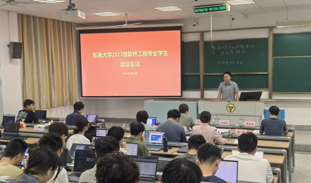 2025年9月18日至19日,av电影 2023级专业技能实训成果答辩会在九龙湖校区教四201教室举行,av电影金嘉晖副院长、孔佑勇副院长、汪芸教授、蔡志玲老师、李青老师,南京臻融科技有限公司葛亚林总经理、黄志勇老师、丘笑天老师、涂劲斌老师、仲哲卿老师、唐彬老师、李金龙老师、雷媛元老师、阚基奉老师、李玮玮老师,以及av电影2023级软件工程专业本科生共140余人参加了答辩会。
